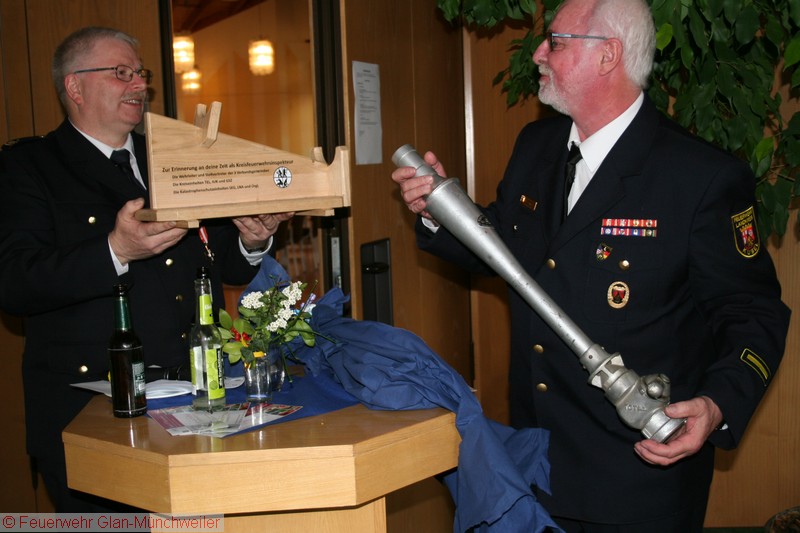 Mit stehenden Ovationen zollten die anwesenden Gäste dem scheidenden Kreisfeuerwehrinspekteur den nötigen Respekt, erst zum Wochenende wurde Udo Schmeiser das Deutsche Feuerwehr-Ehrenkreuz in Silber auf Antrag des Kreisfeuerwehrverbandes Kusel e. V. verliehen.