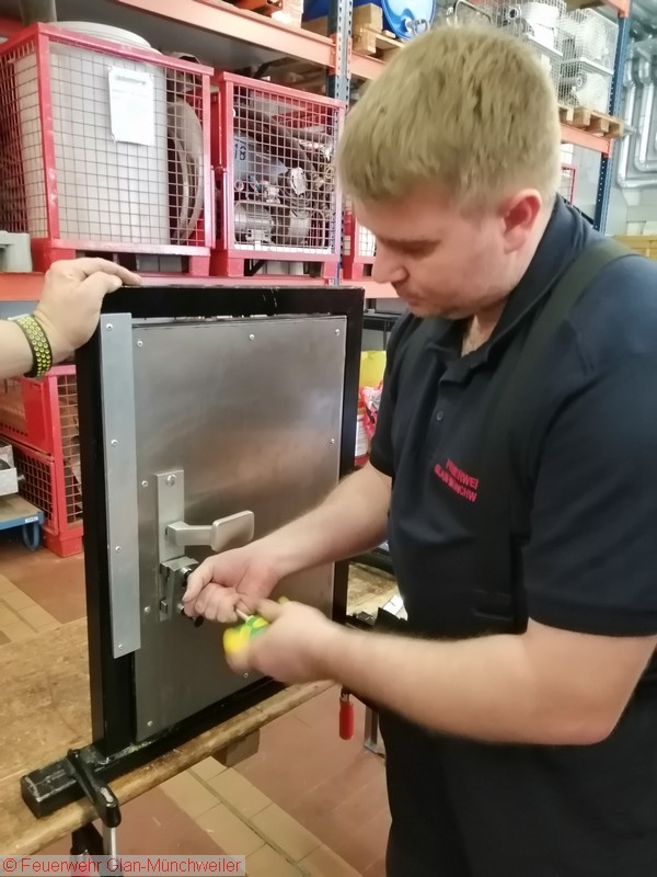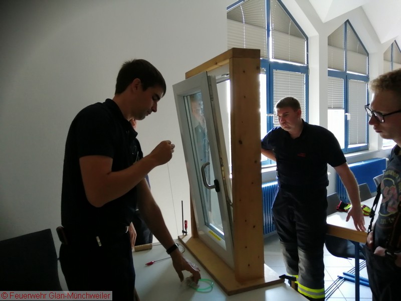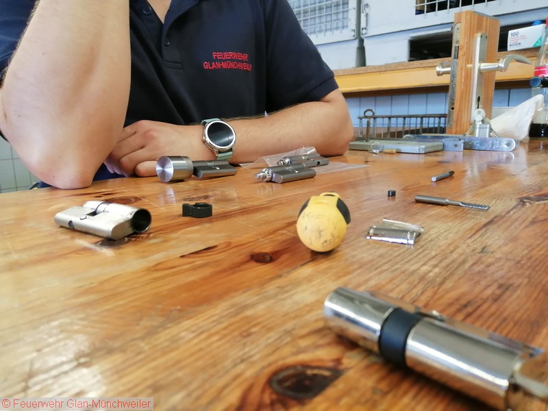 Am Samstag, den 24.08.2019, wurde in Glan-Münchweiler das erste Seminar durch den neu gebildeten Ausbildungszug der Feuerwehr VG Oberes Glantal durchgeführt. Durch Teams, jeweils bestehend aus Ausbildern der drei ehemaligen Verbandsgemeinden, werden nach und nach verschiedene Themen ausgearbeitet und in Form von Fortbildungsseminaren innerhalb der Verbandsgemeindefeuerwehr weitergebildet. Das durchgeführte, erste Seminar beschäftige sich mit den Notfalltüröffnungen. Nach theoretischer Einführung in Rechtsgrundlagen, Werkzeuge und Vorgehen konnten im praktischen Teil an folgenden Stationen Übungsöffnungen durchgeführt werden: