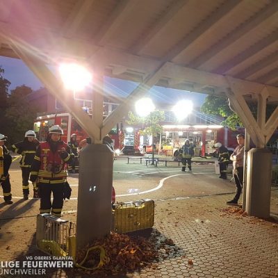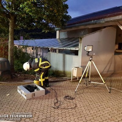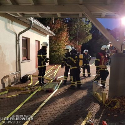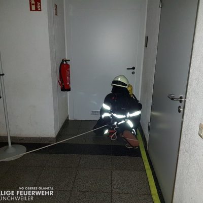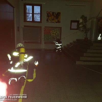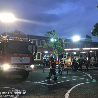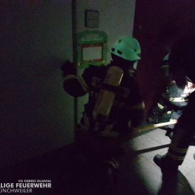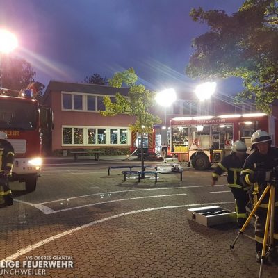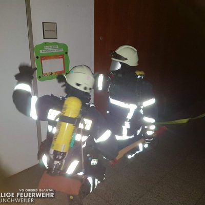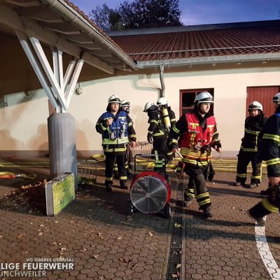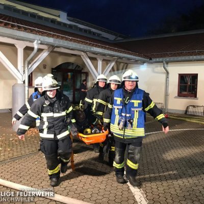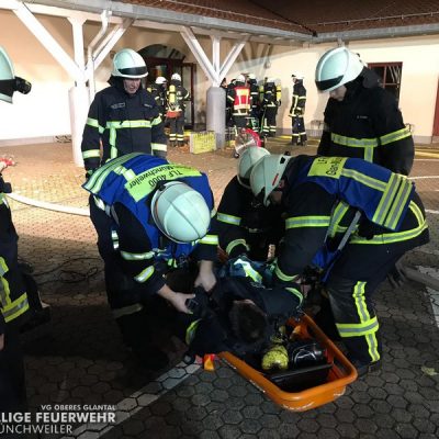 Im Laufe der Übung wurde ein Atemschutznotfall im Gebäude angenommen. Der Sicherungstrupp übernahm zusammen mit einem weiteren Trupp unter Atemschutz die Rettung des verunfallten Atemschutzgeräteträgers.