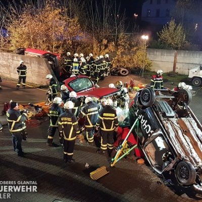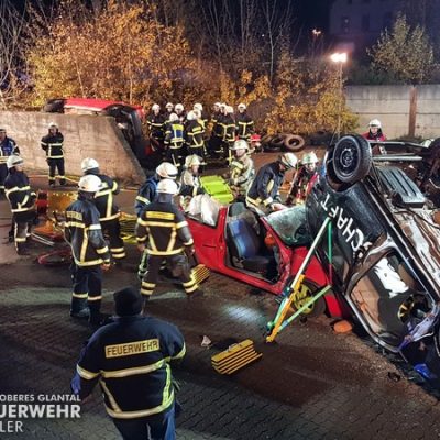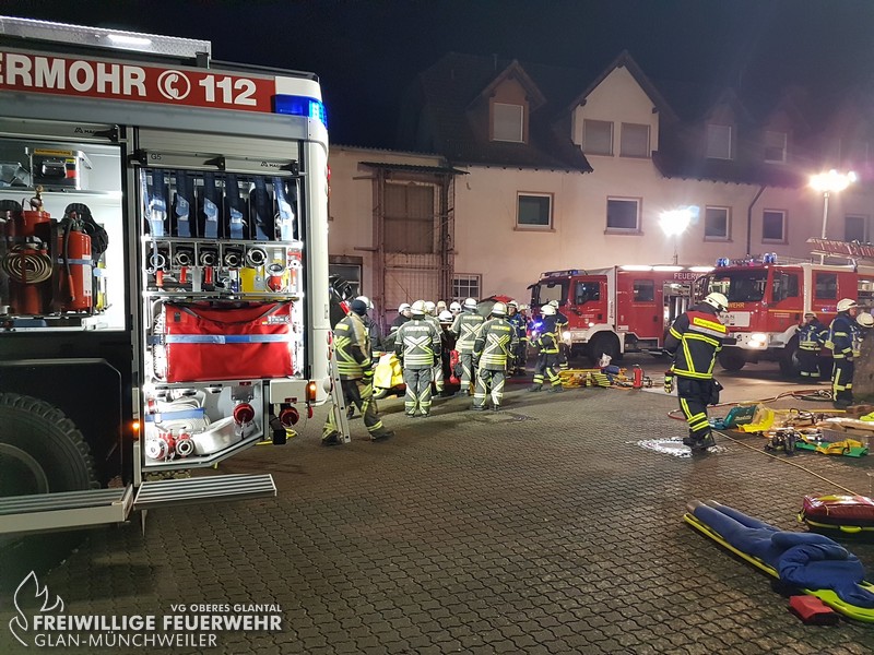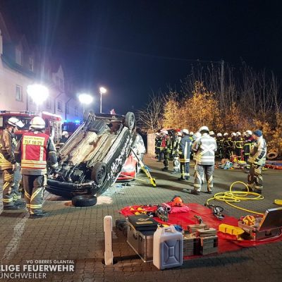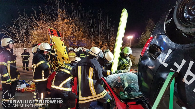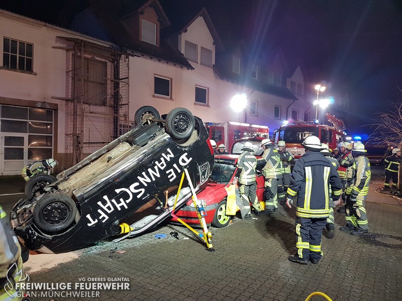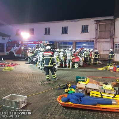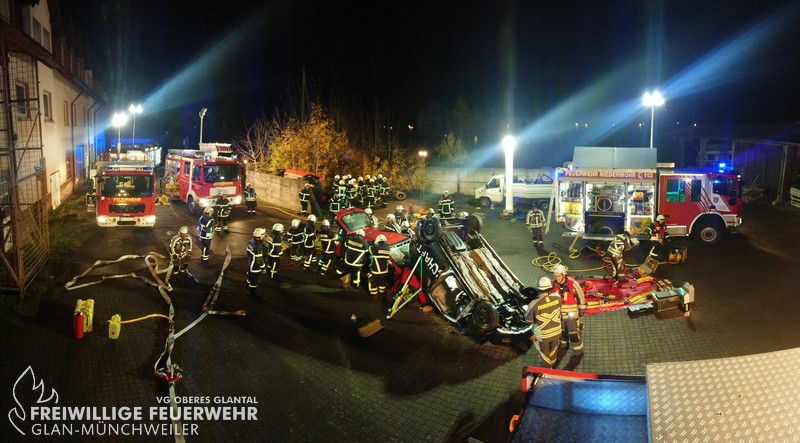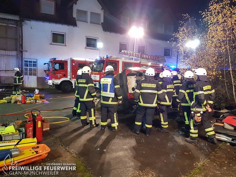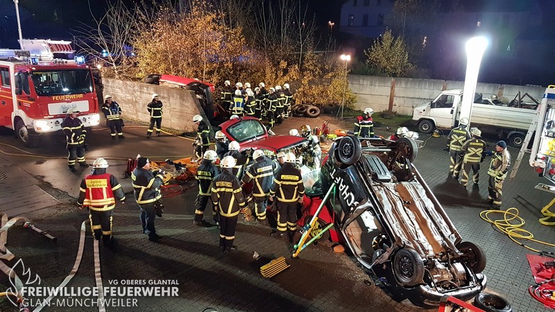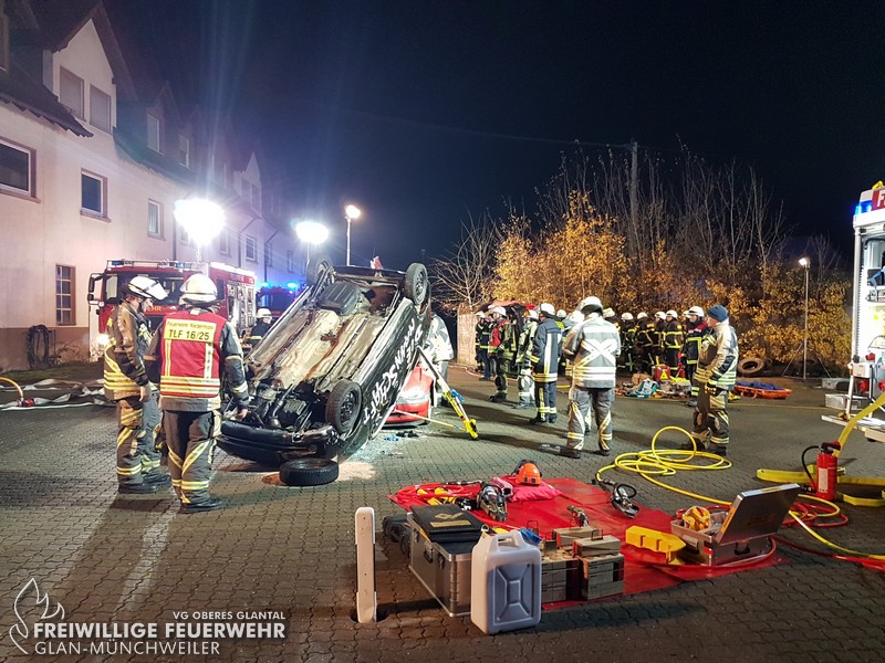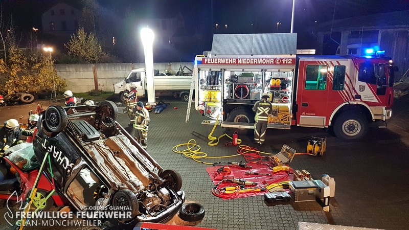 Am Montag den 25.11.2019 fand die jährliche Gemeinschaftsübung der Feuerwehren Glan-Münchweiler und Niedermohr statt. Seit Jahren richtet jede der Feuerwehreinheiten im Wechsel eine Einsatzübung aus, um die Zusammenarbeit zu festigen und somit im Einsatzfall eine reibungslose Abarbeitung der Einsatzlagen zu gewährleisten. In diesem Jahr lag der Schwerpunkt der Übung im Bereich der Technischen Hilfe. Ausgangslage war, dass sich die Feuerwehr Glan-Münchweiler bereits bei einem Einsatz auf der BAB 62 befand und gleichzeitig ein weiterer Verkehrsunfall mit drei Fahrzeugen und mehreren eingeklemmten Personen auf dem ehemaligen Gelände der Baufirma Hanz in Glan-Münchweiler gemeldet wurde.