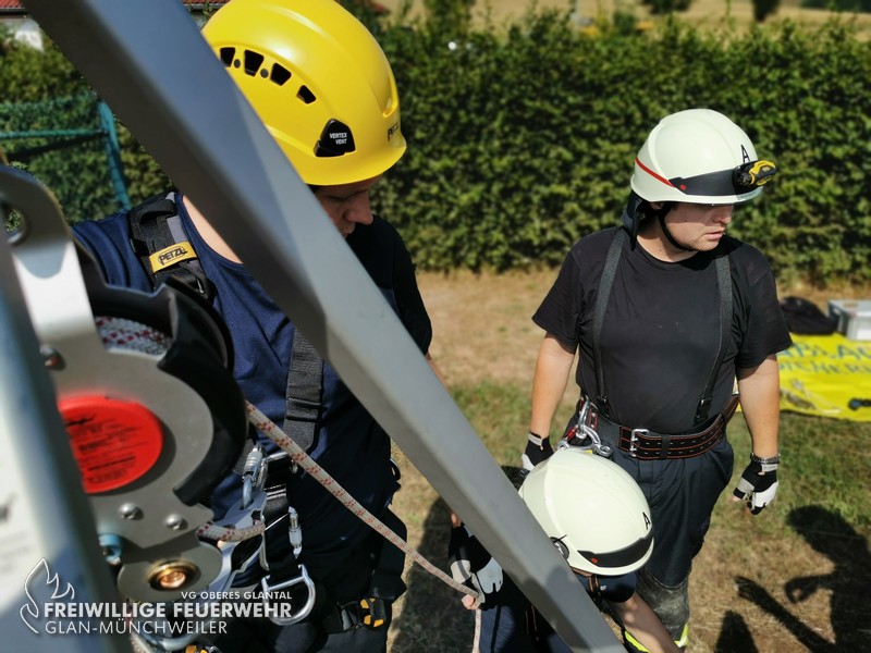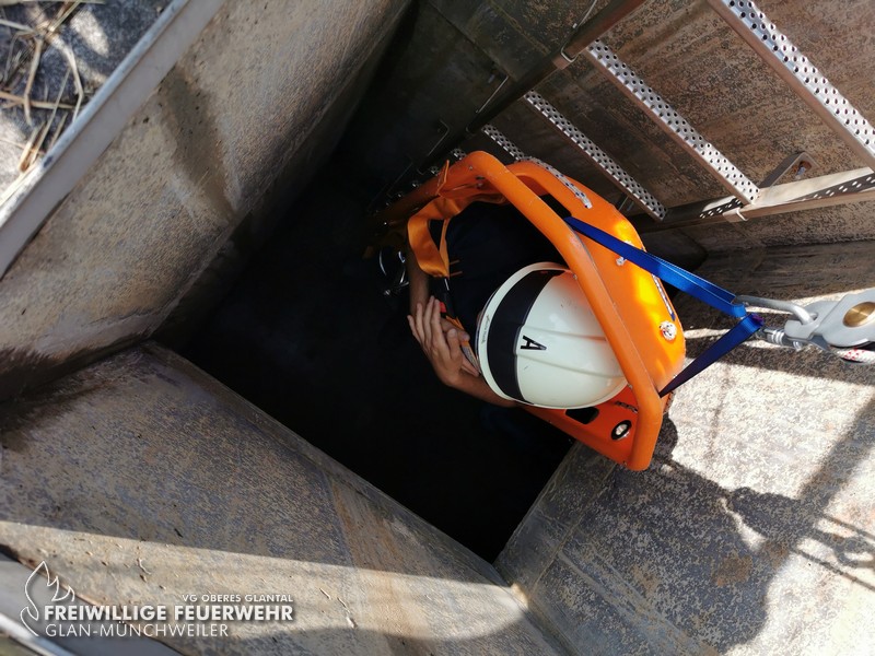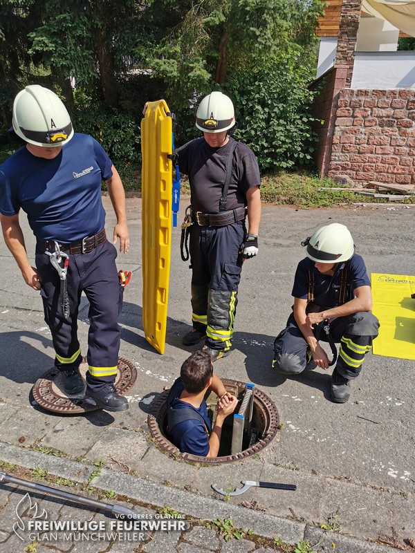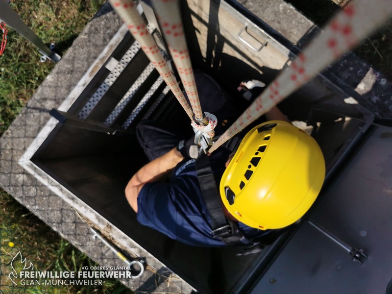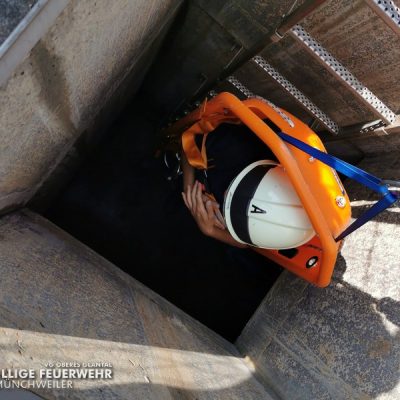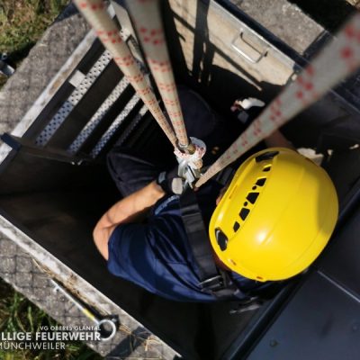 Am Samstag, den 18.07.2020, fand – nach längerer Pause – wieder ein praktischer Ausbildungsdienst der Fachgruppe TH-AB (Technische Hilfe – Arbeiten in absturzgefährdeten Bereichen) statt. Im Fokus stand dabei die Rettung aus Schächten mittels Rollgliss und Schleifkorbtrage. Nachdem an einem ersten Schacht eine Rettungsübung abgeschlossen war, wurden weitere drei Schächte in der Ortslage von Glan-Münchweiler bestiegen.