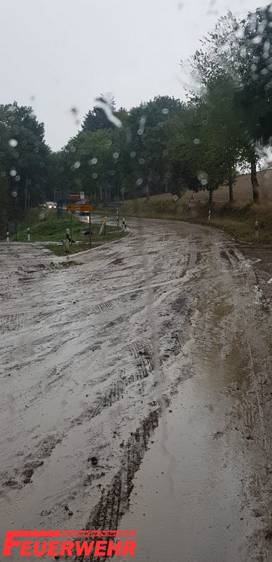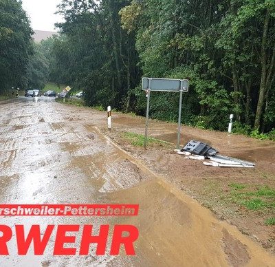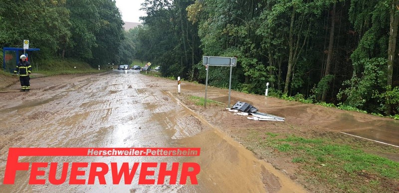 Auf Grund eines Starkregenereignis im Bereich Langenbach wurde die L350 mit Schlamm überschwemmt. Die zuerst alarmierte Feuerwehr Konken forderte die Feuerwehr Herschweiler-Pettersheim zur Unterstützung und Absicherung der Gefahrenstellen nach. Der Kreuzungsbereich wurde gemeinsam mit dem Landesbetrieb Mobilität gereinigt.