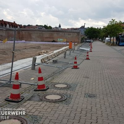 Während der Abarbeitung des ersten Unwettereinsatzes am Freitagnachmittag war die Feuerwehr Glan-Münchweiler parallel in der Bahnhofstraße gefordert. Auf einer Länge von 60 Metern war ein Bauzaun umgestürzt und ragte in die Straße. Die Gefahrenstelle wurde abgesichert.
