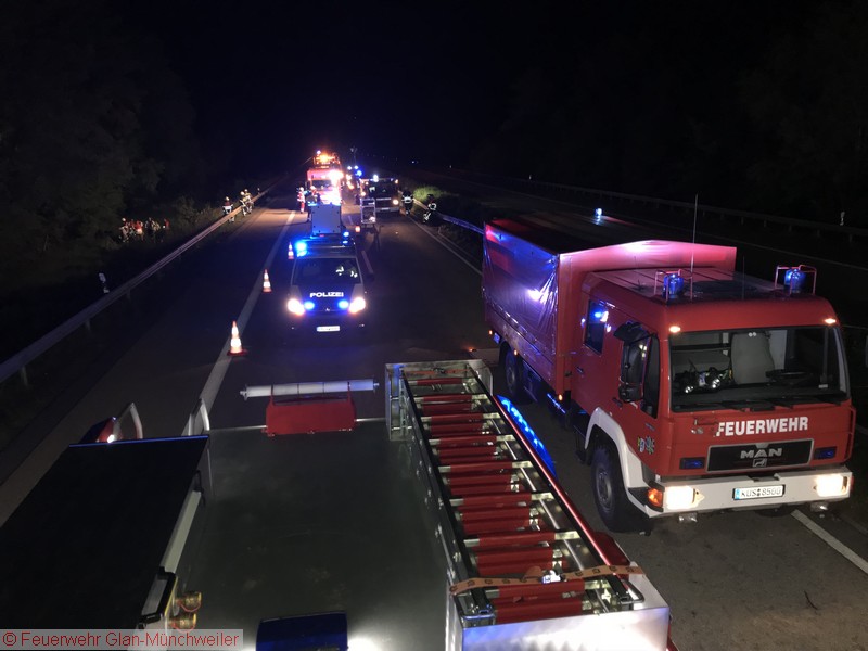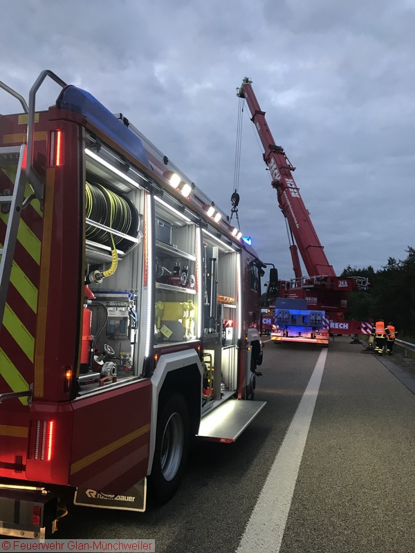 Autobahnpolizei, Bergungsunternehmen, Feuerwehr Niedermohr, Feuerwehr Ramstein, GSZ-Gerätegruppe, LBM
