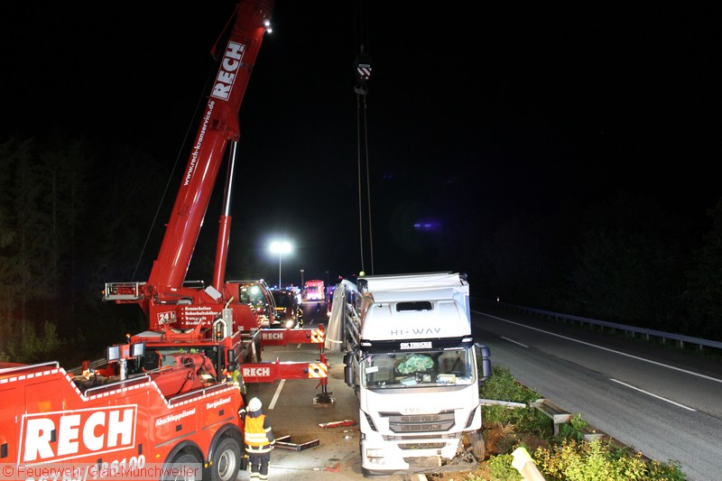 Der verunfallte LKW wurde währenddessen durch ein Kranunternehmen zur Bergung vorbereitet. Nach Abschluss der Maßnahmen durch die Feuerwehr und Begutachtung mit dem Landesbetrieb Mobilität wurde die Einsatzstelle an diesen übergeben. Für die Dauer des Einsatzes war die BAB 62 zeitweise voll gesperrt.