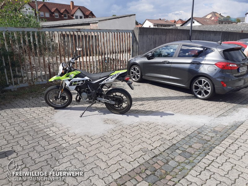 Erneut wurden wir mündlich über einen Verkehrsunfall in der Bahnhofstraße informiert. Beim Ausparken kollidierte ein PKW mit einem vorbeifahrenden Moped. Die Einsatzstelle wurde abgesichert und auslaufende Betriebsstoffe aus dem Moped wurden abgestreut. Die Einsatzstelle wurde an die Werke der Verbandsgemeinde zur Beschilderung übergeben. Zur Endreinigung der Fahrbahn wurde eine Spezialfirma mit einem Fahrzeug zur Beseitigung von Ölverschmutzungen hinzugezogen.