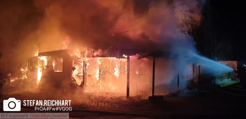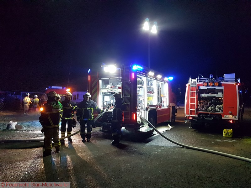 Die Feuerwehr Schönenberg-Kübelberg forderte das Tanklöschfahrzeug 4000 der Feuerwehr Glan-Münchweiler zu einem Brandeinsatz auf dem Campingplatz in Schönenberg-Kübelberg an. Dort standen fünf Parzellen mit Wohnwägen, Vorzelten, Holzverschlägen sowie mehrere Fahrzeuge beim Eintreffen der Feuerwehr im Vollbrand.