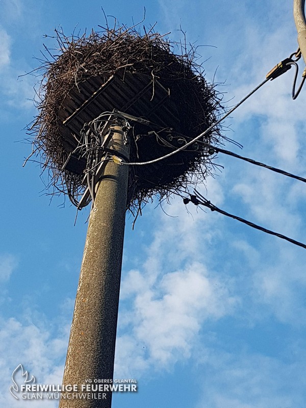 Telefonisch wurden wir über eine starke Rauchentwicklung und Funkenflug an einem Strommast mit Storchennest in Rehweiler informiert. Aktuell, zum Zeitpunkt des Anrufes, wäre jedoch nichts mehr zu sehen gewesen. Die Einsatzstelle wurde im Augenschein genommen und es konnte ein Schaden an der Freileitung gesichtet werden. Das Storchennest wurde durch den Kurzschluss nicht in Mitleidenschaft gezogen. Der zuständige Energieversorger wurde verständigt und die Einsatzstelle an ihn übergeben.