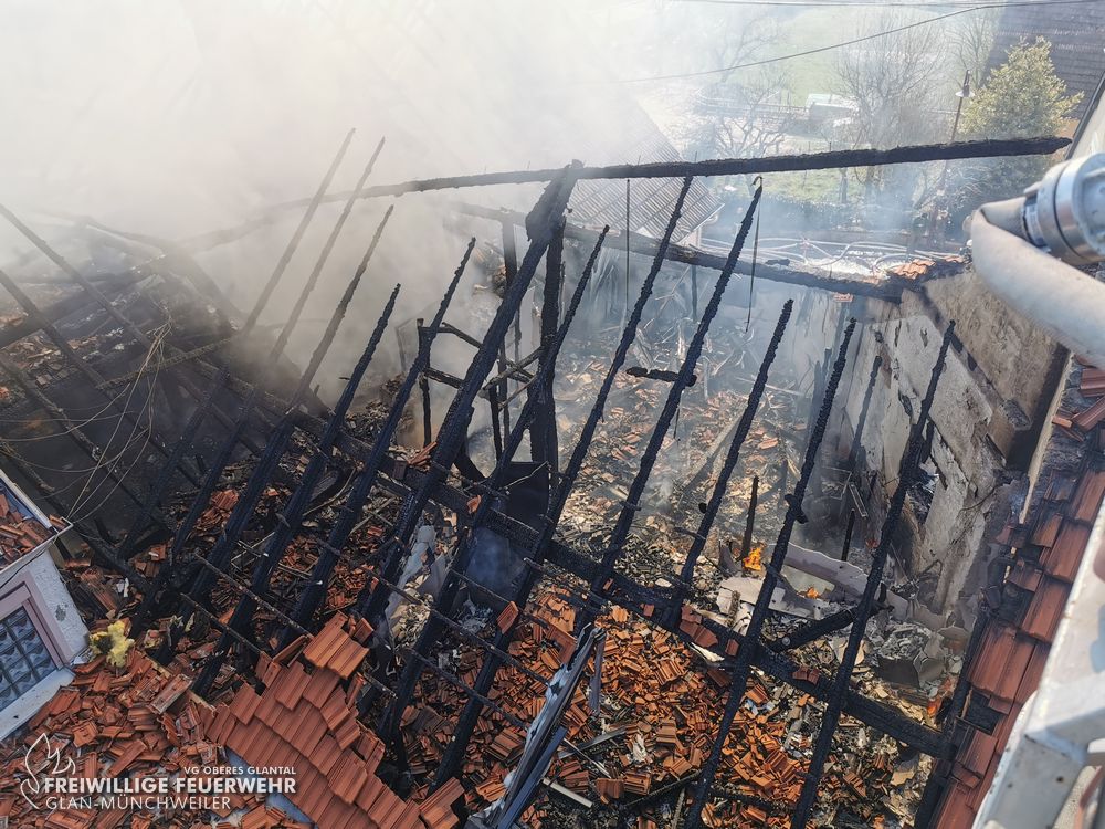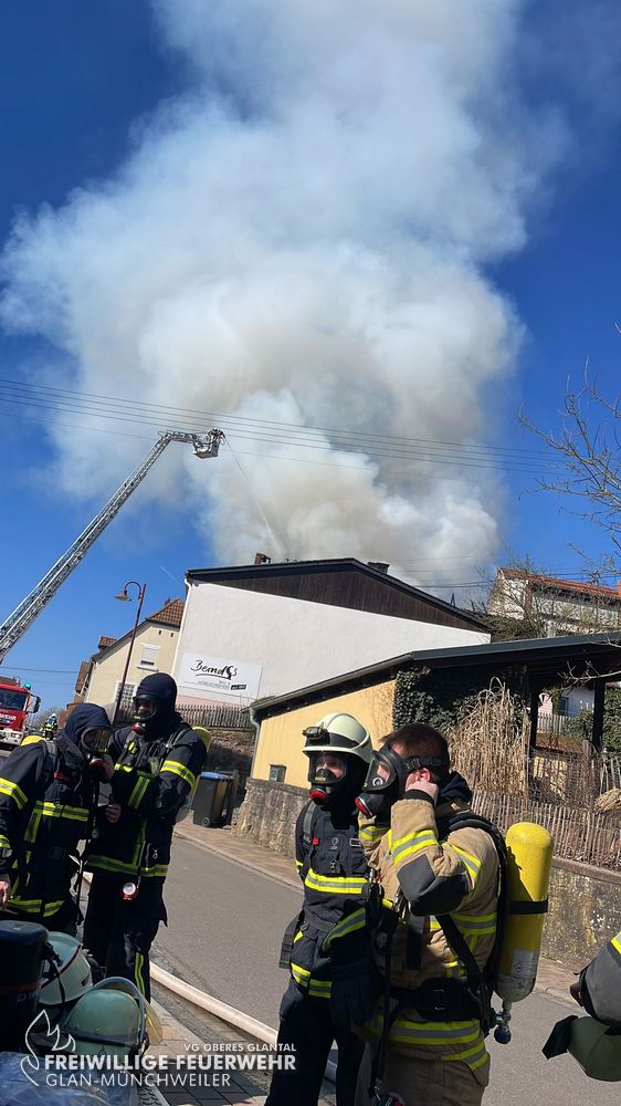 Der Löschzug aus Glan-Münchweiler nahm einen Innen- und Außenangriff vor, um das Wohngebäude zu schützen. Der Brand breitete sich zügig auf den Schreinereibereich aus. Aufgrund des Umfangs des Einsatzes war der Einsatz von zwei Hubrettungsfahrzeugen sowie etlichen Atemschutztrupps notwendig, weshalb auch überregional Einheiten alarmiert wurden. Die nachgeforderten Kräfte wurden den gebildeten Einsatzabschnitten zugeteilt und unterstützten bei den Löscharbeiten, die sich bis in den Abend zogen. Durch den Löscheinsatz konnte der Brand auf das betroffene Gebäude begrenzt werden.