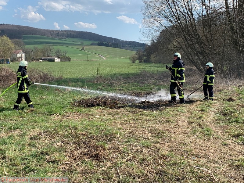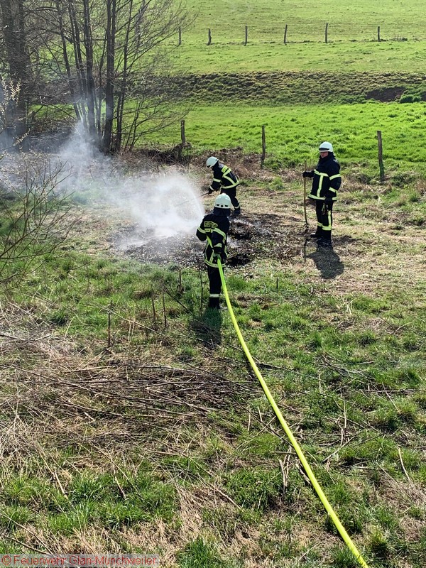 Um 14:23 Uhr alarmierte die ILS Kaiserslautern am Samstag die Einheiten Herschweiler-Pettersheim, Krottelbach, Glan-Münchweiler sowie DLK Kusel zu einem Gebäudebrand nach Herschweiler-Pettersheim in die Bockhofstraße. Nach Eintreffen des MLF Herschweiler-Pettersheim konnte glücklicherweise schnell Entwarnung gegeben werden: Es brannte lediglich Grünschnitt mit einer massiven Rauchentwicklung hinter einem Industriegebäude in der Bockhofstraße. Außer Herschweiler-Pettersheim konnten die anfahrenden Kräfte somit die Anfahrt abbrechen. Das Feuer wurde mittels 1 C-Rohr abgelöscht und die Einsatzstelle anschließend der Polizei übergeben.