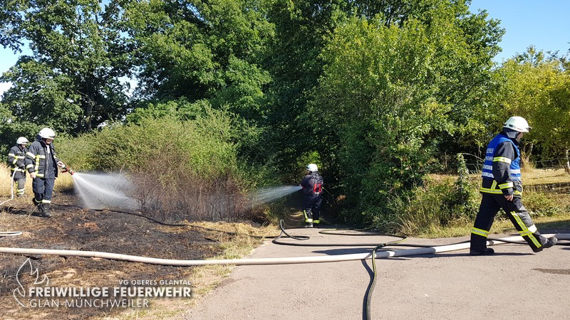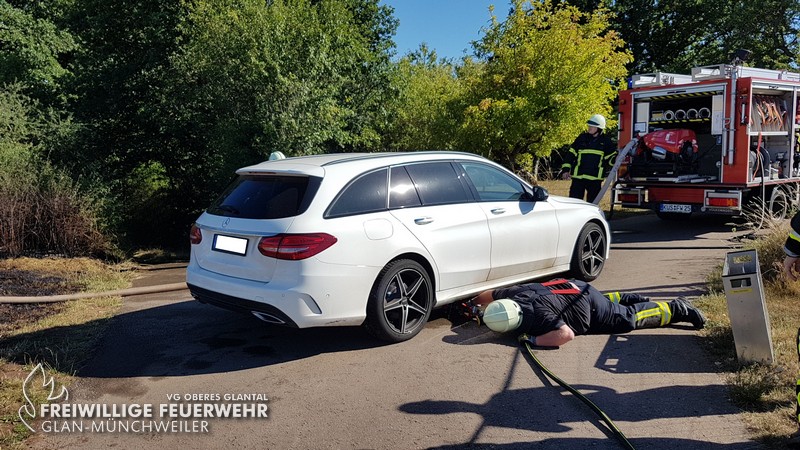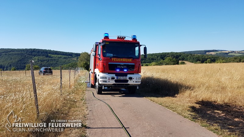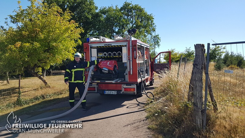 Kurz nach 17 Uhr wurden am Donnerstagabend die Feuerwehren Börsborn, Nanzdietschweiler und Glan-Münchweiler zu einem Flächenbrand auf die K54 zwischen Nanzdietschweiler und Niedermohr alarmiert. Ein PKW, welcher auf dem trockenen Gras abgestellt war, hatte die Wiese entzündet und einen Brand von ca. 50 m² verursacht. Das TSF-W Nanzdietschweiler sowie das TLF Glan-Münchweiler löschten die Wiese sowie den Unterboden des Fahrzeuges ab. Das LF 20 und die Feuerwehr Börsborn konnten an der Einsatzstelle in Bereitstellung bleiben.