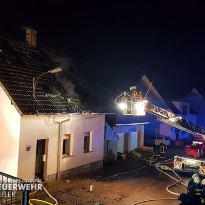 Zu einem Gebäudebrand nach Altenkirchen wurden in der Nacht zum Sonntag die Feuerwehren Altenkirchen, Frohnhofen, Dittweiler, Schönenberg-Kübelberg sowie die Drehleiter Waldmohr und der Gerätewagen Atemschutz/Strahlenschutz aus Glan-Münchweiler alarmiert. Vor Ort brannte in der Breitenbacher Straße ein Gebäude, ein Bewohner war beim Eintreffen der ersten Einheiten auf das Dach geflüchtet und wurde umgehend mittels tragbarer Leiter gerettet. Weitere Bewohner hatten sich bereits in Freie begeben. Es wurde eine Brandbekämpfung mittels Innen- und Außenangriff sowie über die Drehleiter durchgeführt. Der GW-AS aus Glan-Münchweiler stellte die Versorgung mit Atemschutzgeräten sicher.
