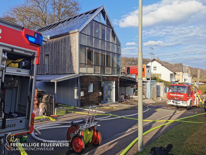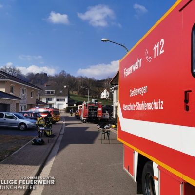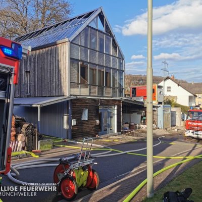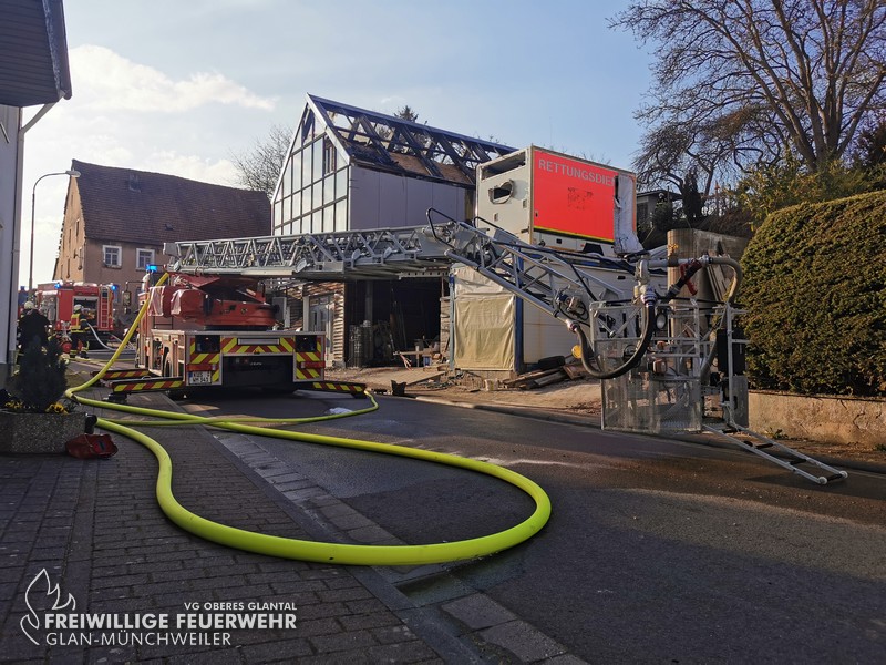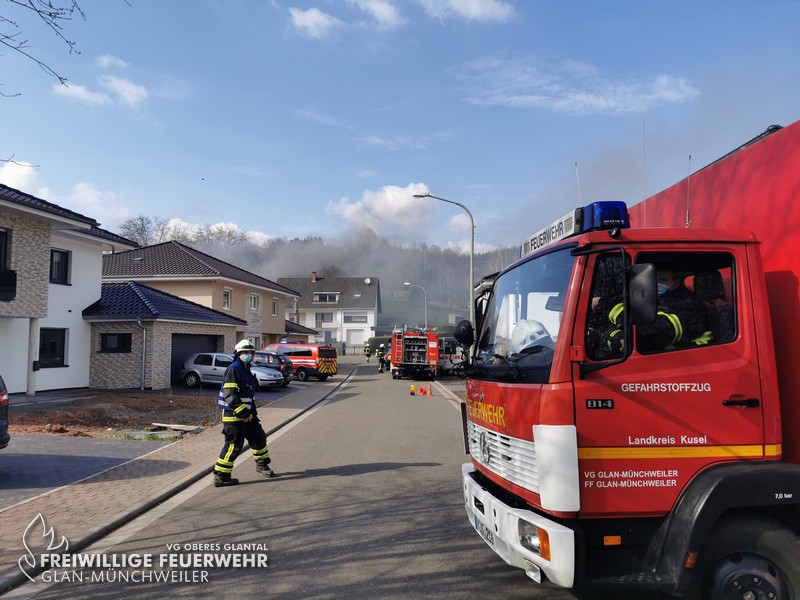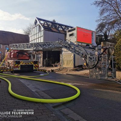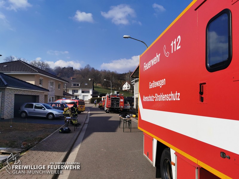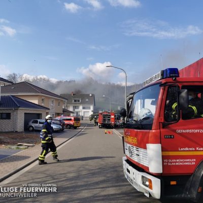 Gemäß Alarmierungsordnung wurde der in Glan-Münchweiler stationierte Gerätewagen Atemschutz/Strahlenschutz des Landkreises zusammen mit den Feuerwehren Schönenberg-Kübelberg, Dunzweiler, der Führungsstaffel sowie der Drehleiter Waldmohr um 14:44 Uhr am Donnerstagnachmittag zu einem Gebäudebrand nach Schmittweiler alarmiert. Bei Eintreffen der ersten Kräfte stand der Dachstuhl in Vollbrand und wurde mittels mehreren Rohren bekämpft. Nach Eintreffen des Gerätewagen Atemschutz übernahm dieser umgehend die Bereitstellung der Atemschutzreserve und die Atemschutzdokumentation. Im weiteren Verlauf wurden die Feuerwehren Altenkirchen und Brücken zur Bereitstellung von PA-Trägern sowie zur Löschwasserrückhaltung nachalarmiert.