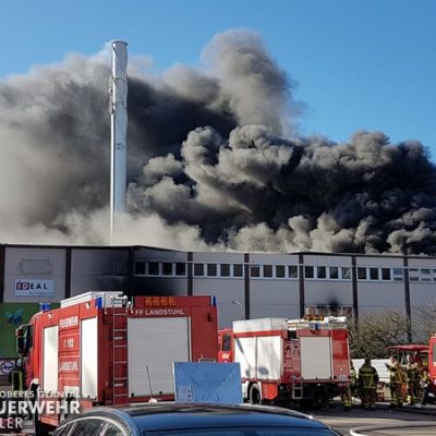 Am 22.03.2020 kam es bei der Fa. IDEAL Automotiv in Otterberg (LK Kaiserslautern) zu einem Großbrand in der Produktions-/ lagerhalle des Automobilzulieferers. Zur Sicherstellung der Atemschutzreserve wurde der Gerätewagen-Atemschutz/Strahlenschutz (GW/AS) zur Einsatzstelle alarmiert. Das Fahrzeug, welches über 24 Pressluftatmer sowie weitere 24 Reserveflaschen und Lungenautomaten verfügt, löste den GW/AS des Landkreises Kaiserslautern nach 10 Stunden ab.