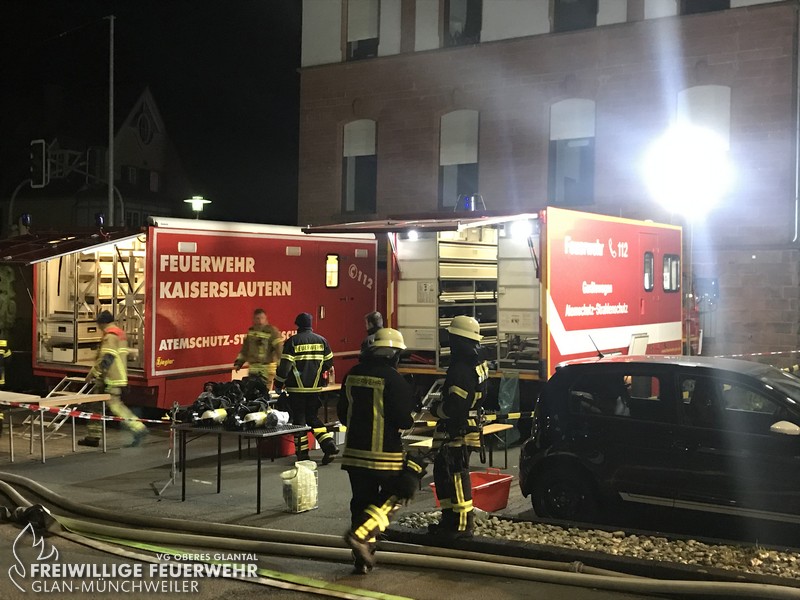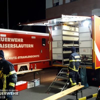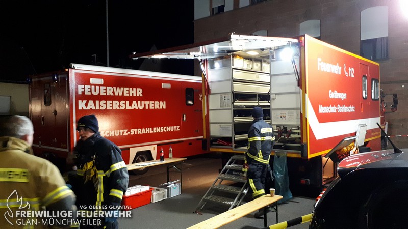 Im weiteren Verlauf des Einsatzes kamen der Gerätewagen Atemschutz/Strahlenschutz der Berufsfeuerwehr Kaiserslautern sowie der Gerätewagen Atemschutz/Strahlenschutz des Donnersbergkreises ebenfalls zum Einsatz.