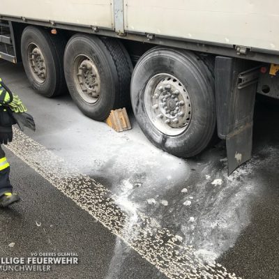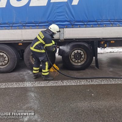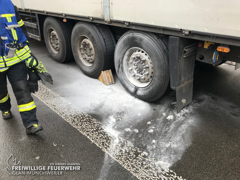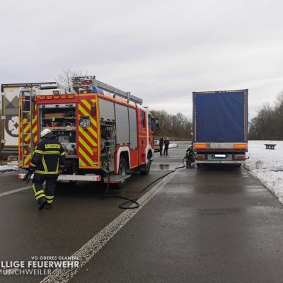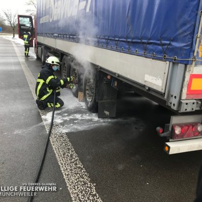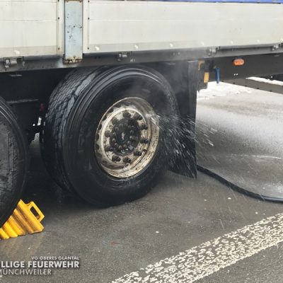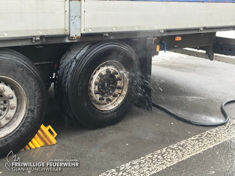 „LKW-Brand auf der BAB 62 auf dem Parkplatz Heidenkornrech“ lautete die Alarmierung der ILS Kaiserslautern am Mittwochmittag. Vor Ort stellte sich heraus, dass sich eine Bremse an einem LKW überhitzt hatte und mit einem Feuerlöscher bereits abgelöscht wurde. Mittels Wärmebildkamera wurde der Bereich der Bremsen am LKW kontrolliert und aufgrund der hohen Temperaturen mit dem Schnellangriff des Hilfeleistungslöschgruppenfahrzeuges (HLF) heruntergekühlt.