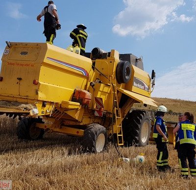 Das Feuer im Inneren des Mähdreschers wurde mit den Schnellangriffen des HLF und TLF abgelöscht sowie die erhitzte Metallteile des Fahrzeuges gekühlt. Nach mehrfacher Kontrolle mit der Wärmebildkamera und erneutem Ablöschen von Glutnestern war der Einsatz beendet.