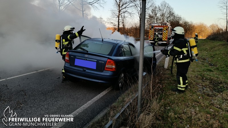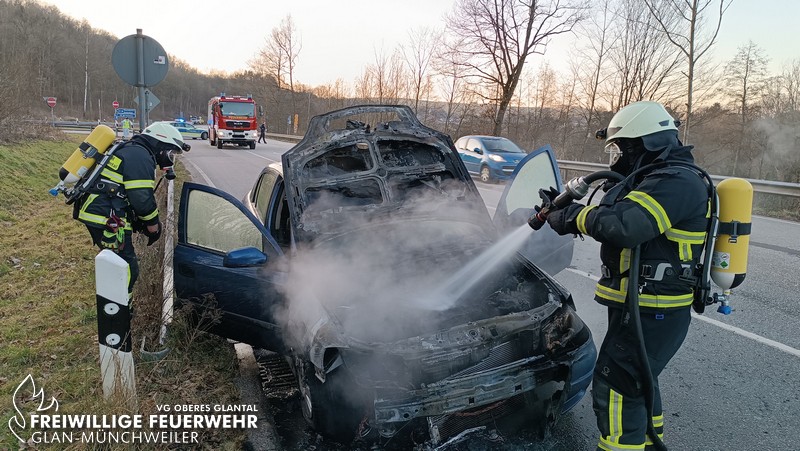 Zu einem PKW-Brand auf der L 358 zwischen der Autobahn Auf-/bzw. Abfahrt zur BAB 62 wurden wir am Mittwochabend alarmiert. Beim Eintreffen brannte das Fahrzeug im Motorraum, der Fahrer befand sich außerhalb des Fahrzeuges in Sicherheit. Das Feuer wurde durch einen Trupp unter Atemschutz mit dem Schnellangriff des Hilfeleistungslöschgruppenfahrzeuges abgelöscht. Durch die Besatzung des TLF sowie die Polizei wurde die Einsatzstelle abgesichert. Nach einer abschließenden Temperaturkontrolle mit der Wärmebildkamera wurde die Einsatzstelle an die Polizei übergeben.