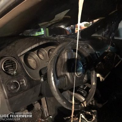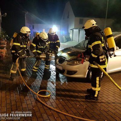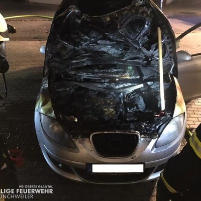Zu einem Fahrzeugbrand in der Lindenstraße in Steinbach musste die Ausrückgemeinschaft Steinbach / Henschtal sowie die Feuerwehr Glan-Münchweiler in der Nacht von Mittwoch auf Donnerstag ausrücken. An einem geparkten PKW kam es aus bisher unbekannten Gründen zu einem Brand im Motorraum.
