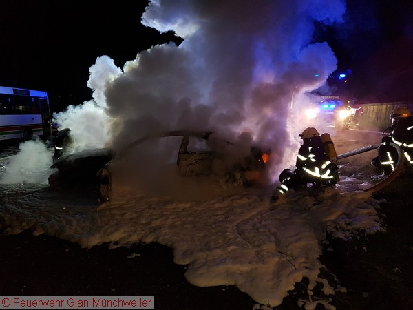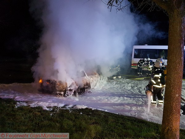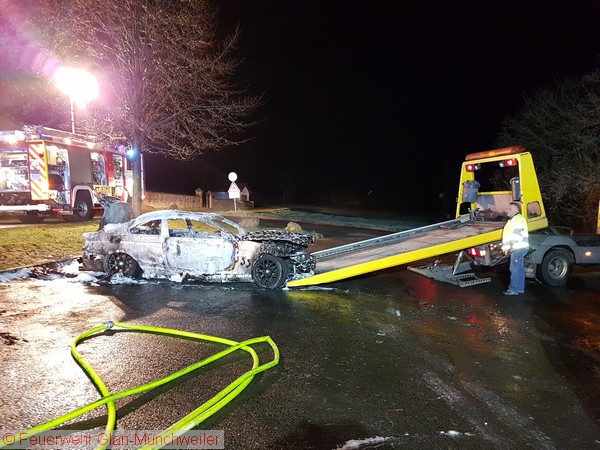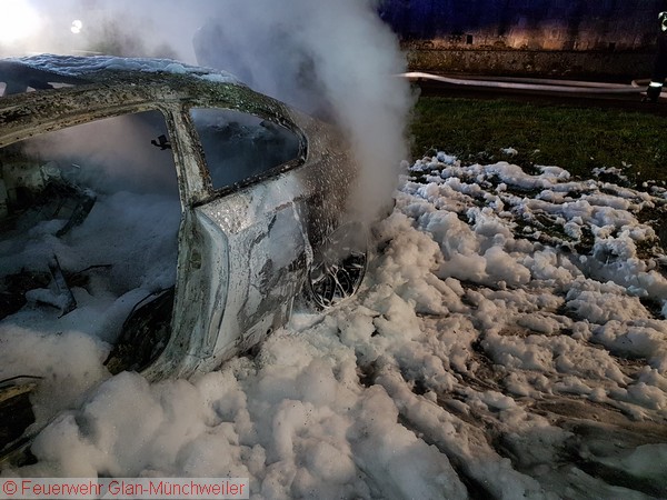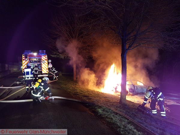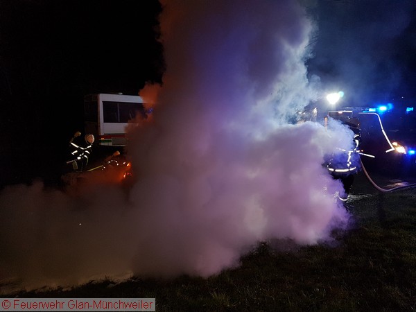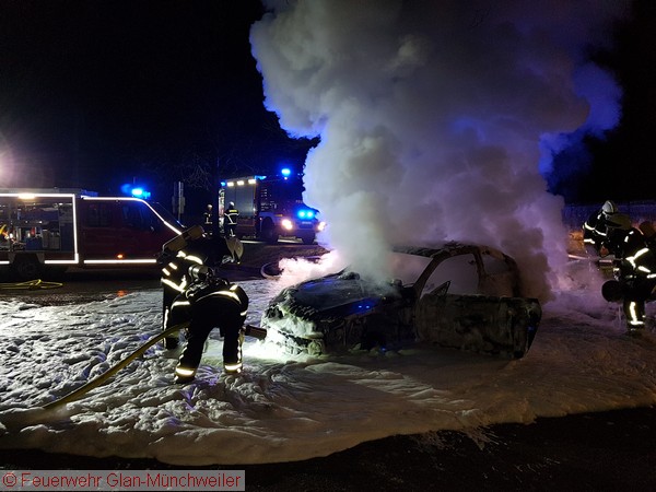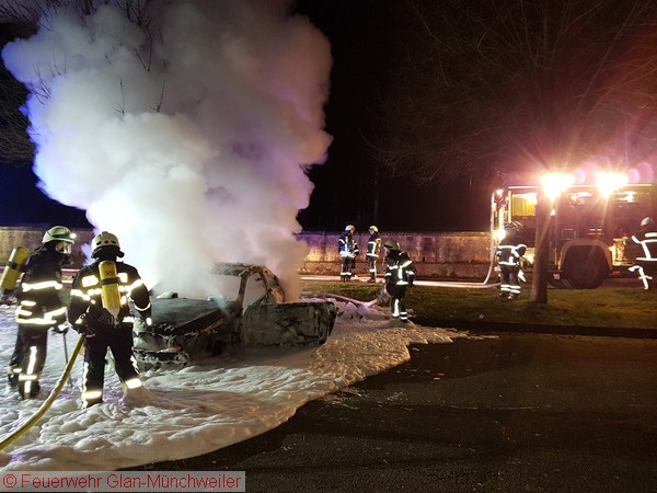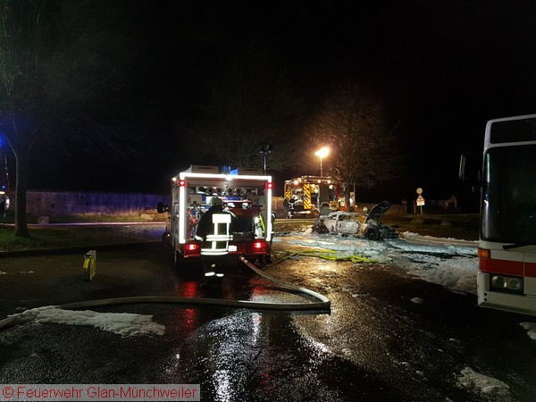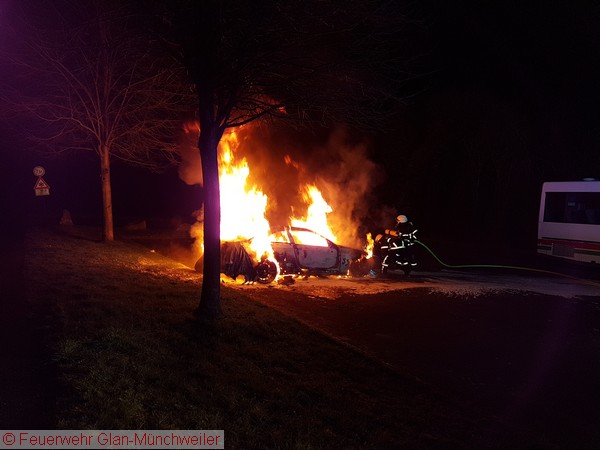 Die Ausrückgemeinschaft Steinbach / Henschtal sowie die kleine Gruppe der Feuerwehr Glan-Münchweiler wurden gegen Mitternacht zu einem PKW-Brand neben dem Feuerwehrgerätehaus in Steinbach alarmiert. Beim Eintreffen der Feuerwehr Steinbach stand das Fahrzeug bereits im Vollbrand.