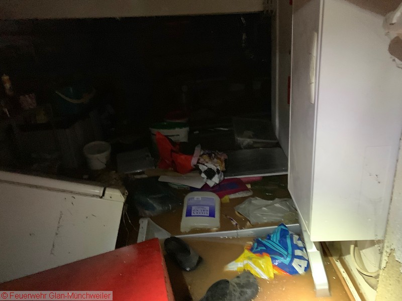 Den zeitaufwendigsten Einsatz hatten wir in der Ringstraße in Glan-Münchweiler. Hier wurde eine Tiefgarage mit 10 Fahrzeugstellplätzen sowie das angrenzende Mehrfamilienhaus inklusive des Fahrstuhlschachtes überflutet.
