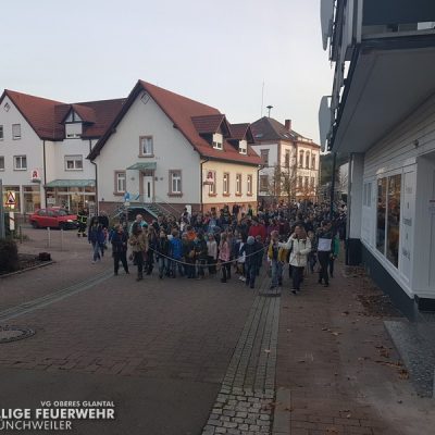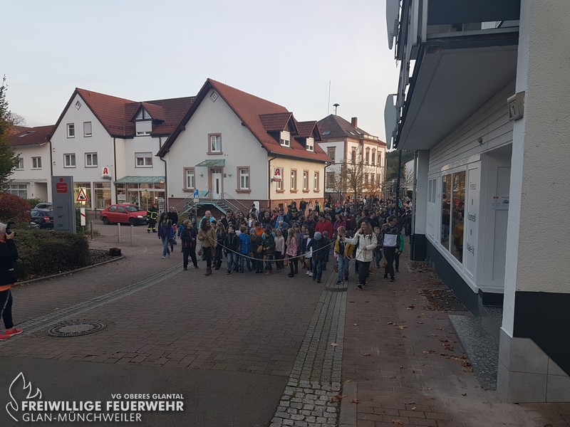 Der Umzug mit seinen Teilnehmern wurde von seinem Ausgangspunkt an der Volksbank sicher zum Endpunkt, dem Schulhof der Glantalschule, geleitet.