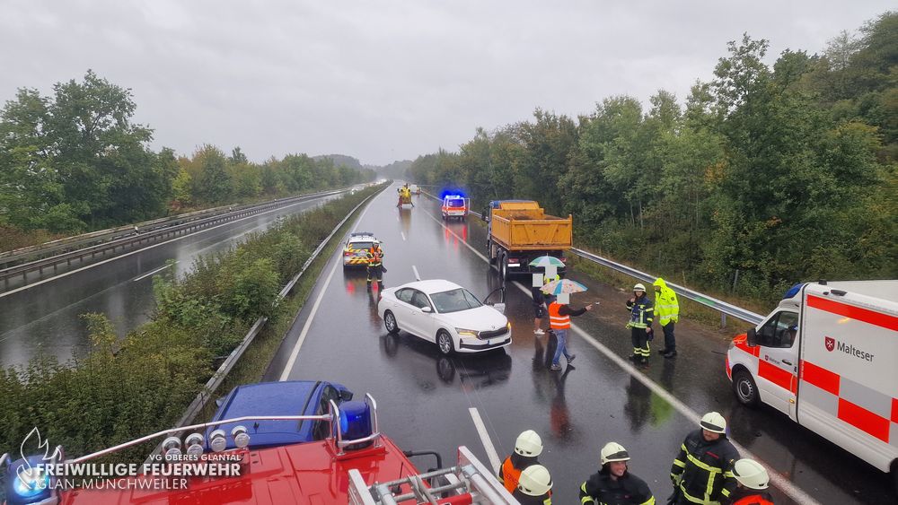 Am Mittwochvormittag wurde die Feuerwehr Glan-Münchweiler zu einem Verkehrsunfall auf der Autobahn A62 bei Glan-Münchweiler in Fahrtrichtung Kusel alarmiert. Es ereignete sich ein Unfall zwischen einem Pkw und einem Kleintransporter. Der Fahrer des Pkws konnte mit Unterstützung von Ersthelfern schon vor dem Eintreffen der ersten Einsatzfahrzeuge das Fahrzeug verlassen. Die Feuerwehr betreute die beteiligte Personen bis zum Eintreffen des Rettungsdienstes und kontrollierte die Fahrzeuge auf auslaufende Betriebsstoffe hin. Die Autobahn musste während der Maßnahmen voll gesperrt werden. Nachdem der Rettungshubschrauber die Autobahn verlassen hatte und die Einsatzstelle durch die Polizei freigegeben worden war, konnte der verunfallte Pkw auf den Standstreifen geschoben und anschließend wurde die Fahrbahn grob gereinigt werden. Die Einsatzstelle wurde anschließend der Polizei übergeben.