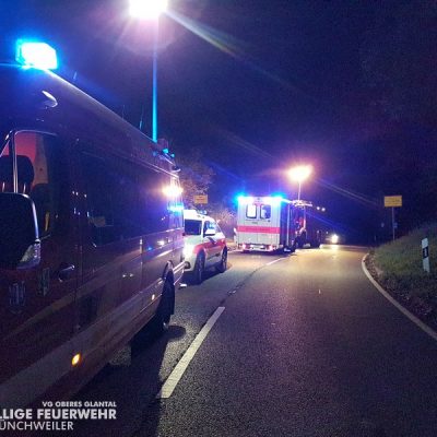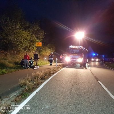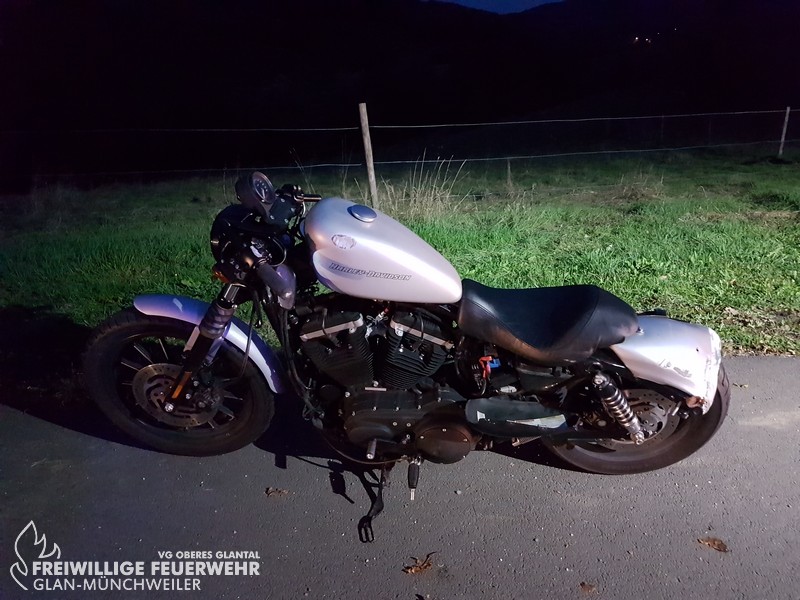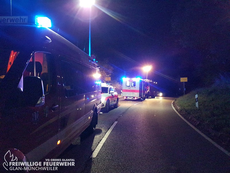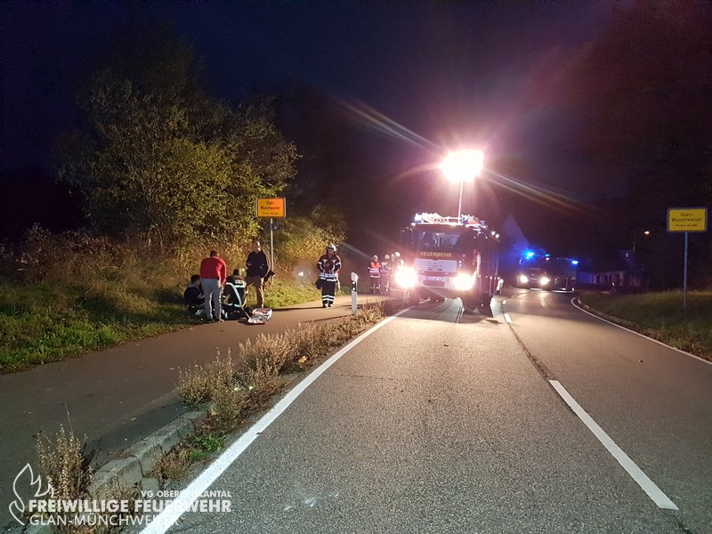 „Verkehrsunfall mit Motorrad auf der B 423; Lage unklar“ lautete die Alarmierung der Integrierten Leitstelle Kaiserslautern. Am Ortseingang von Glan-Münchweiler stürzte ein Motorradfahrer und lag beim Eintreffen des Einsatzleitwagens im Böschungsbereich. Der leichtverletzte Kradfahrer wurde bereits durch Feuerwehrangehörige, die die gleiche Strecke befuhren, versorgt. Im weiteren Verlauf wurde der Fahrer durch die First Responder Glan-Münchweiler bis zum Eintreffen des Rettungsdienstes betreut, die Einsatzstelle wurde abgesichert und ausgeleuchtet.