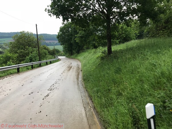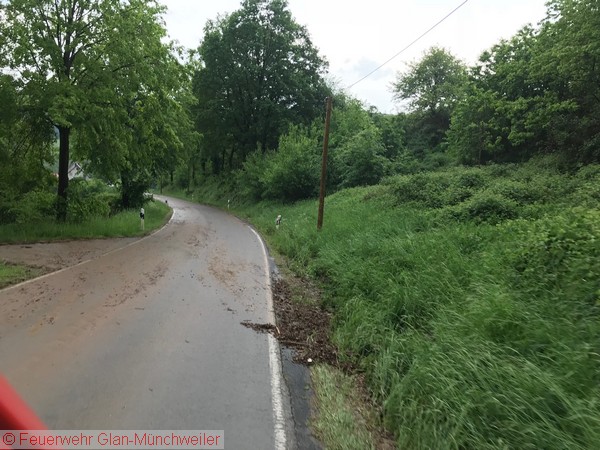 Auf der Rückfahrt vom Einsatz Nr. 47 wurde der Einsatzleitwagen über eine Fahrbahnverschmutzung Henschtal in Richtung Sangerhof informiert.