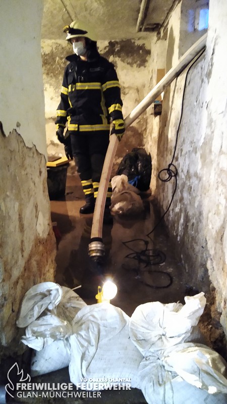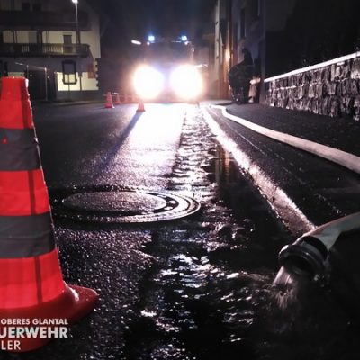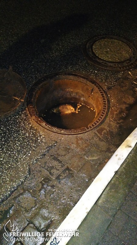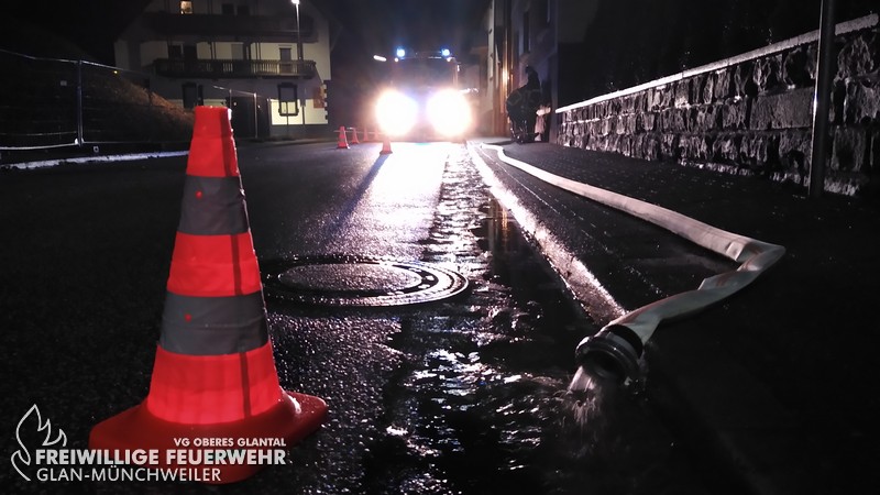 Zu einem Wassernotstand in der Homburger Straße wurde die kleine Gruppe der Feuerwehr Glan-Münchweiler durch die Integrierte Leitstelle der Feuerwehr Kaiserslautern alarmiert. Die Meldung lautete ca. 10 cm Wasser im Keller eines Wohnhauses. Durch die Besatzung des Hilfeleistungslöschgruppenfahrzeuges wurde versucht, das Wasser mittels Tauchpumpe abzupumpen. Trotz nachlassendem Regen, gelang es jedoch nicht, das Wasser gänzlich zu entfernen. Bei der Kontrolle des Abwassersystemes in der Homburger Straße wurde dann festgestellt, dass der Kanal bis zur Straßenoberkante voll mit Abwasser stand und dies zurück ins Gebäude lief. Gemeinsam mit der Rufbereitschaft der Verbandsgemeinde Oberes Glantal konnte eine Beschädigung des Kanals innerhalb des EDEKA-Baufeldes lokalisiert werden, welche zur Verstopfung des Kanals führte. Nach umfangreichen Maßnahmen durch die Verbandsgemeinde, die bis zum Abend des 24.12 andauerten, konnte die Schadenstelle behoben werden.