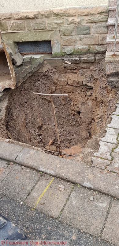 Bei Bauarbeiten war eine Wasserleitung mit einem Bagger beschädigt worden und Wasser lief in ein Gebäude. Die Leitung wurde abgeschiebert und das Wasser im Keller mittels Tauchpumpe und Wassersauger entfernt.